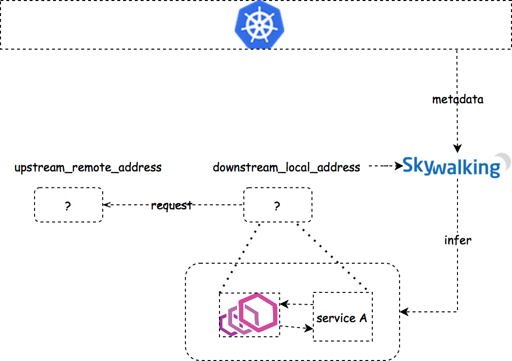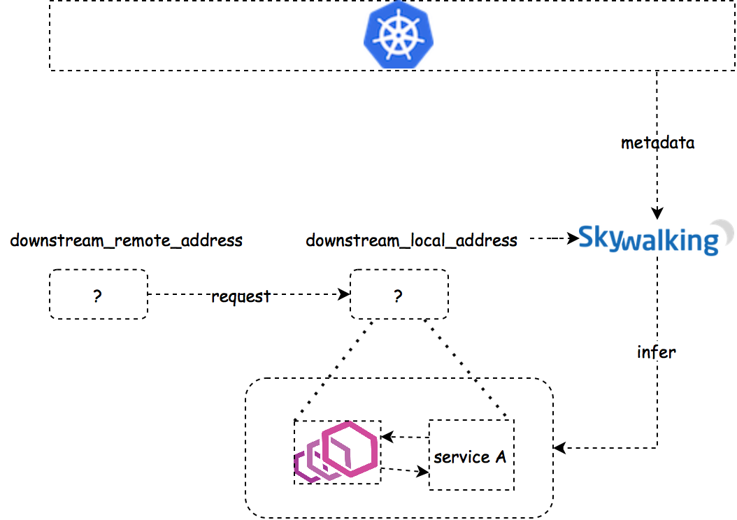 SkyWalking 分析器会检查 downstream_remote_address 是否能够找到对应的 Kubernetes 服务。
